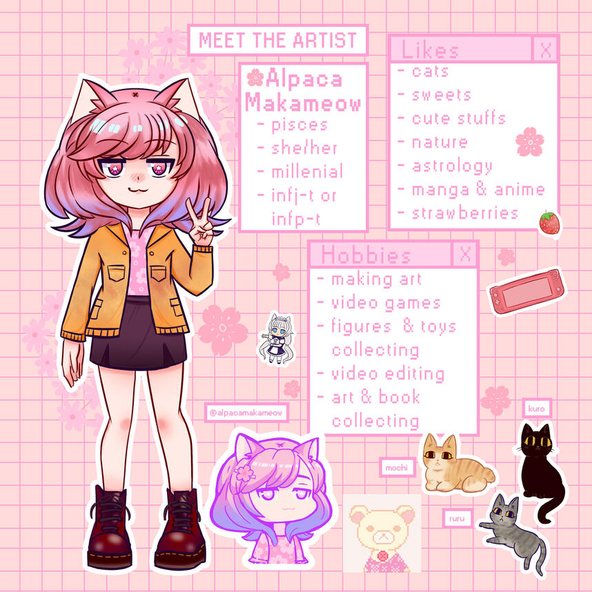 About Me:Hello! I am Makameow! A small visual artist and anime illustrator from the Philippines!If you like collecting anime figures and toys, see cute art and drawings, discover cute random things, and have multiple fandoms, hope we can connect! 🎔My goal is to grow my art skills and online presence, hoping to get exciting opportunities to fulfill my long-time dream of being a successful artist.I'm currently learning Japanese language and my level is N5!